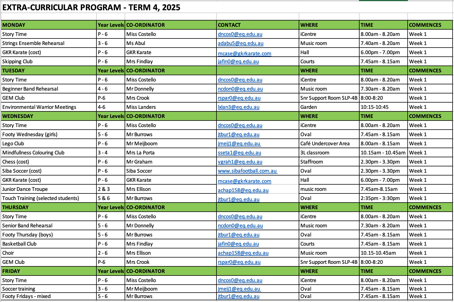 In this section, you can read about exciting opportunities for our students to be involved in excursions, sporting and extra-curricular activities and clubs.